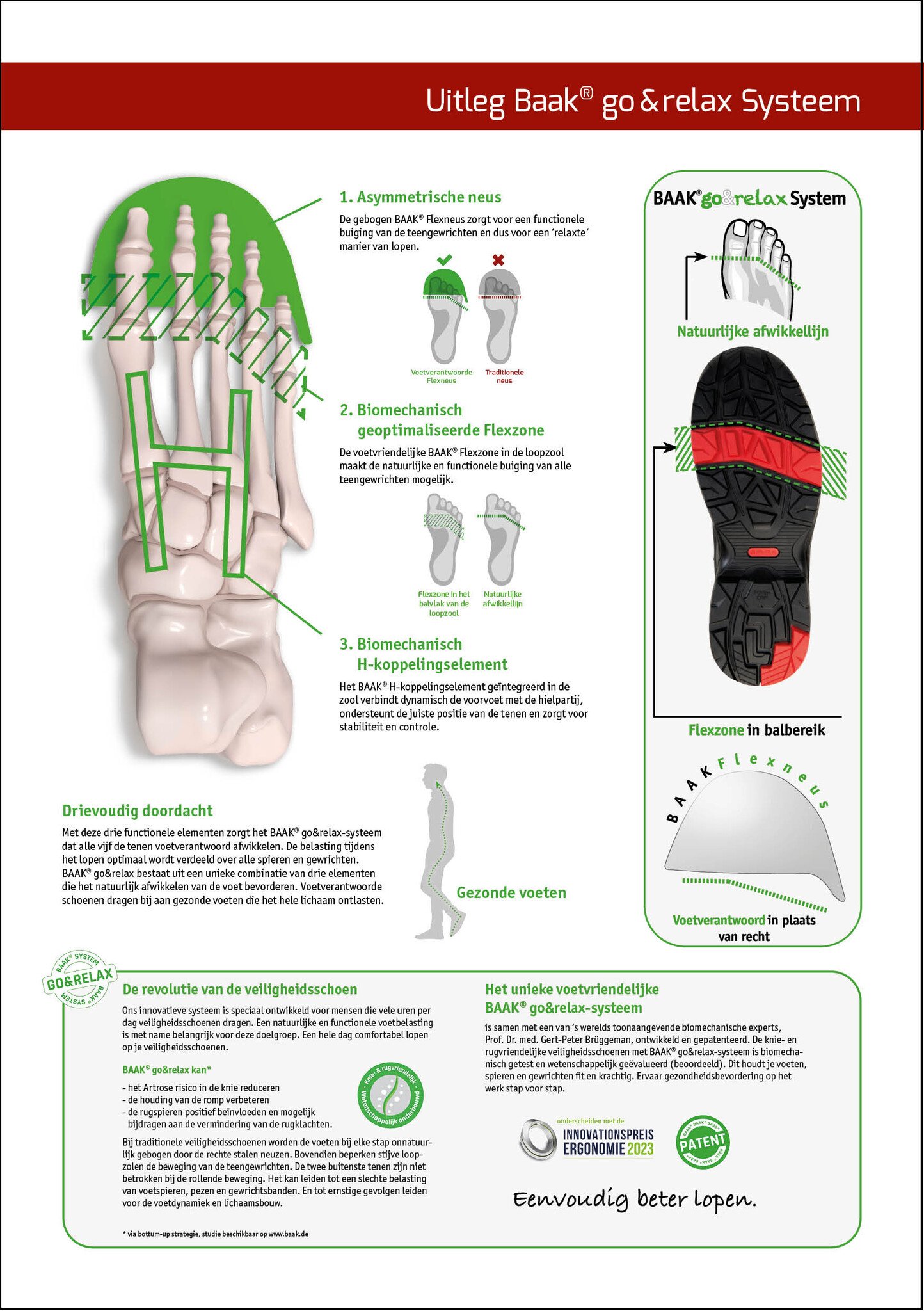 De Baak Alessia is een lichtgewicht schoen uit de serie Adventure met een prettig werkende BOA®-sluiting. Deze schoen is vervaardigd uit hoogwaardig microfiber, hierdoor is de schoen ‘vegan’. De schoen heeft een kunststof slijtneus en is voorzien van een NeoShield Kevlar tussenzool. Dit gerecyclede Kevlar kent een gewichtsreductie van 50% ten op zichte van traditioneel Kevlar. Ook heeft een NeoShield een betere vochtopname van 30% ten opzichte van traditioneel Kevlar. Door zijn sportieve looks en vederlicht gewicht zal deze schoen aanslaan in diverse beroepsgroepen. Bekijk de BOA kwaliteitstest op youtube.com/watch?v=ZKs6IymCAyk. Ook deze schoen is voorzien van het gepatenteerde Baak® Go&Relax systeem.