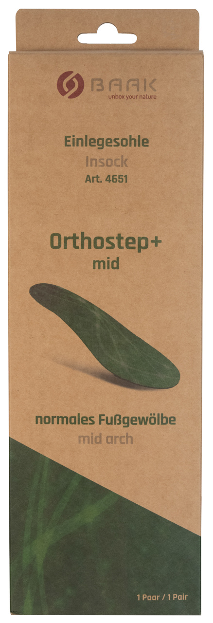 De Baak Orthostep+ zijn inlegzolen om de Baak werkschoenen nog beter te laten aansluiten op de voet. Door middel van de voetplaat wordt er een afdruk gemaakt van de voet en kan er voor de juiste ondersteuning van de voetboog gekozen worden. Er zijn 3 verschillende versies: