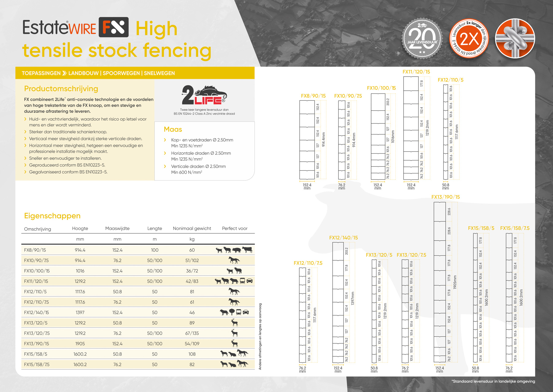 | FX15/158/75/50 | 15-7,5 | 158 cm | 50 m | 9 rollen | verzinkt | 78 kg |