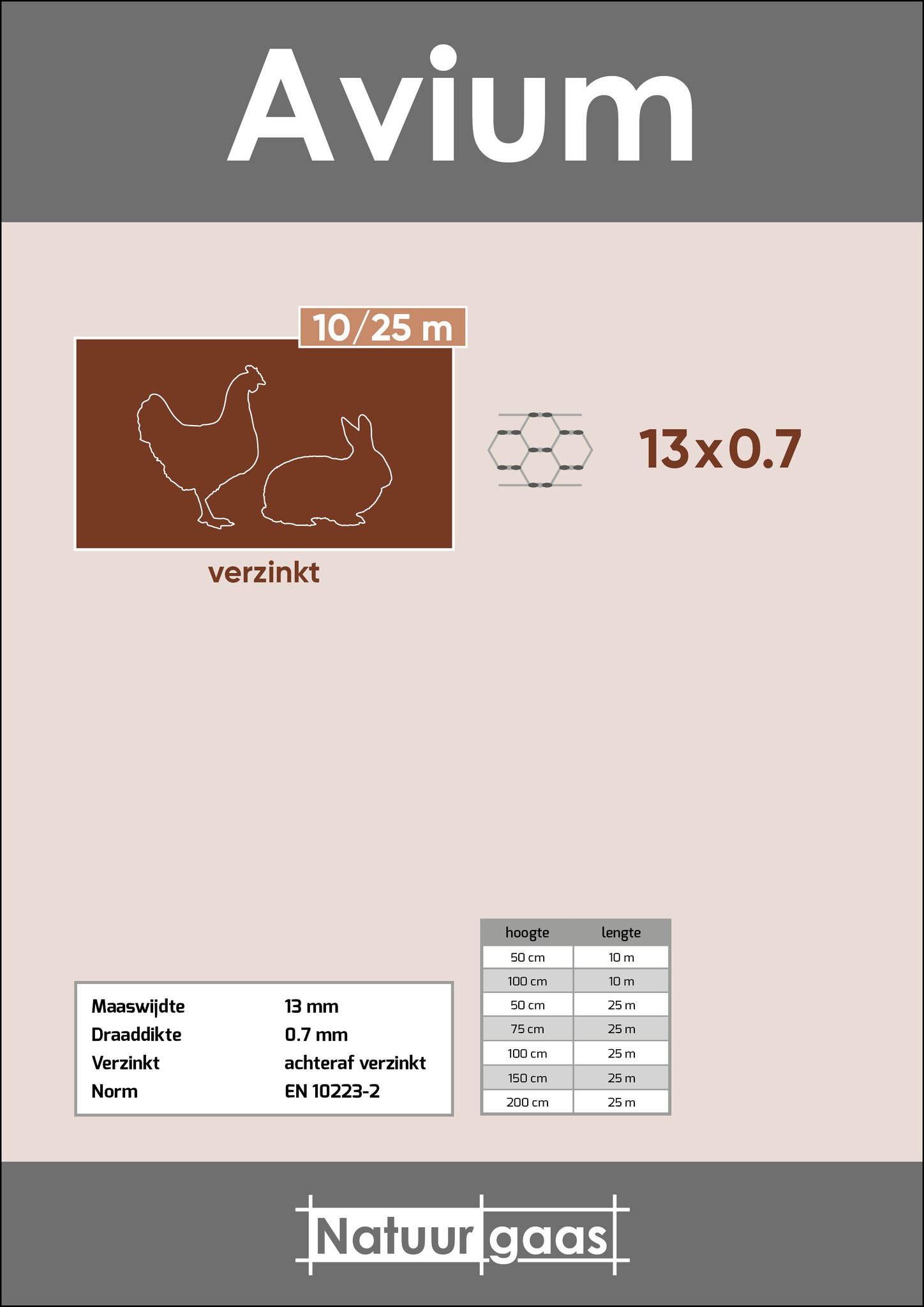 Avium is ideaal voor kleine dieren. Gaas met zeshoekige mazen, achteraf verzinkt en goed corrosiebestendig.